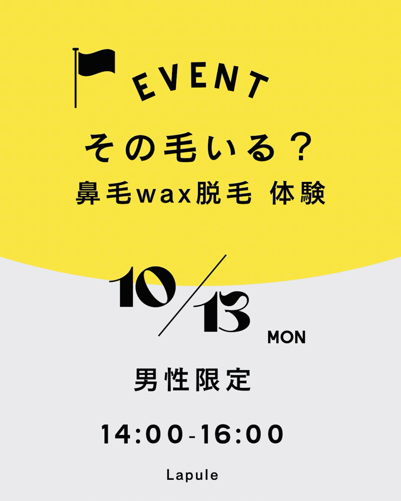 鼻毛ワックスができる特典付きです。ご予約は@lapuleライン予約のみです。